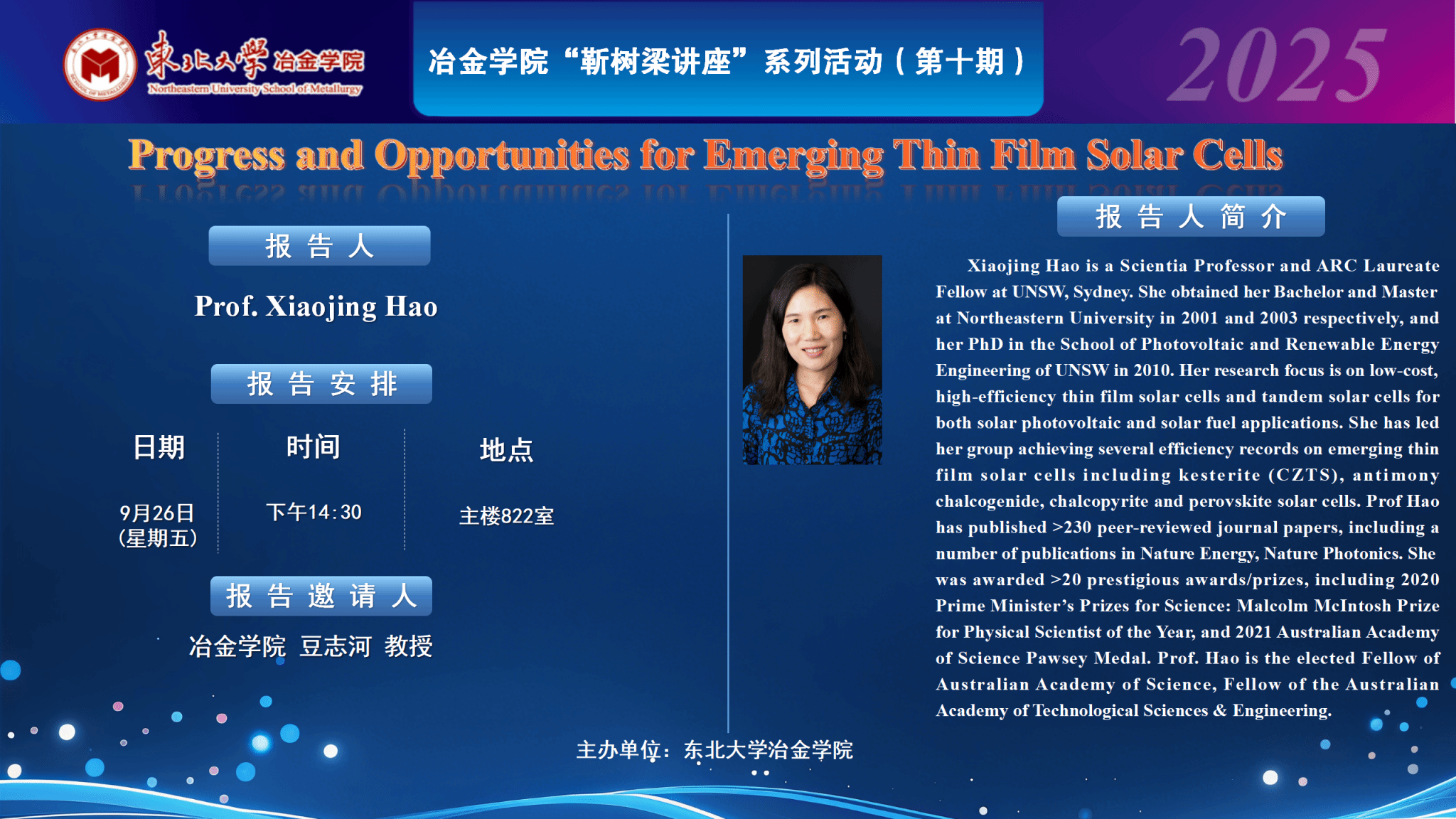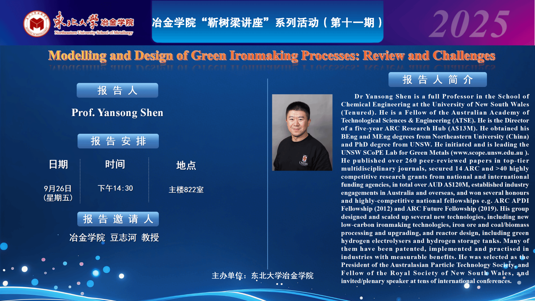 时间:冶金学院“靳树梁讲座”系列活动(第十期)